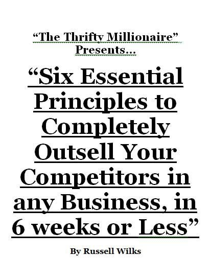 This 'all-meat' Special Report by "The Thrifty Millionaire" - Russell Wilks, shows you the simple, free to cheap, down and dirty all-inclusive simple Marketing it takes to go from being mediocre to superb. From middling to brilliant.